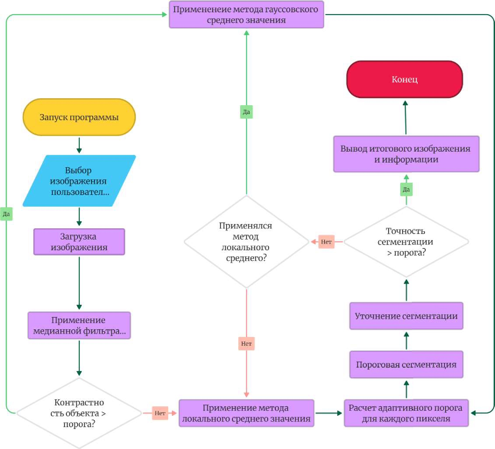 Схема алгоритма применения пороговой сегментации представлена на рис. 5, иллюстрирующем основные этапы: предобработку, выбор порога, пороговую сегментацию.