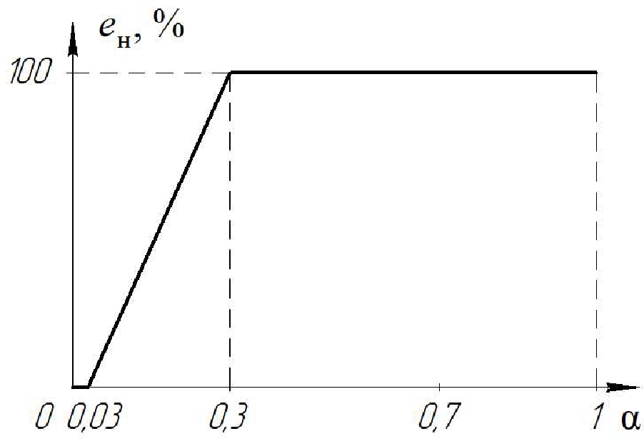 Fig. 3. Dependence of the engine crankshaft speed on the degree of pressure on the acceleration pedal
