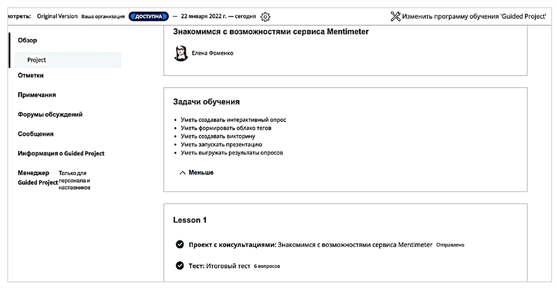 1 The Instructional technique, devised by E.A. Fomenko, Nizhnevartovsk State University for Digital Educational Practices Course