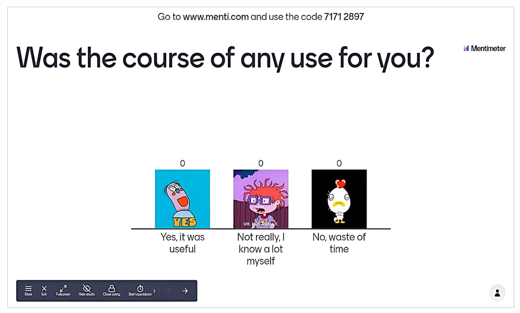 Fig. 3. Employing Mentimeter in classroom: questionnaire example