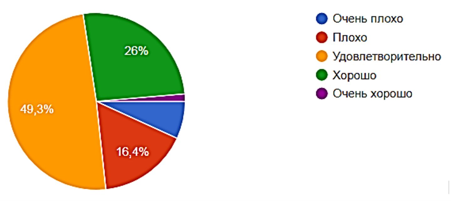 На вопрос «Как Вы оцениваете демографическую ситуацию в России?» большинство респондентов ответили «удовлетворительно» – 49%; «хорошо» – 26%; «плохо» – 16%; «очень плохо» – 8% и 1% – «очень хорошо» (диаграмма).