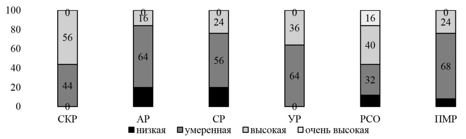 Рис. 1. Выраженность шкал ригидности у студентов с инвалидностью (n = 50, %)