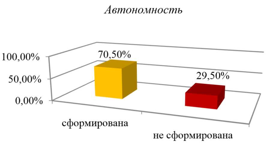 Экспериментальная часть. В результате тестирования были получены следующие результаты: у 29,5% обучающихся старших курсов не сформирован такой критерий, как автономность (рис. 1).