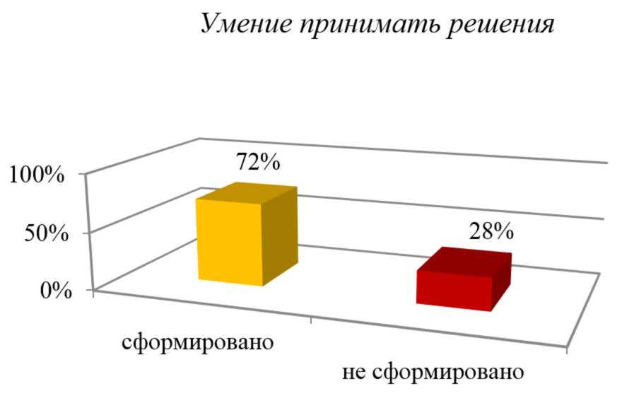 Результаты исследования показывают, что 28% старшекурсников боятся или не умеют принимать самостоятельные решения (рис. 3). Это большая проблема, так как на выпускных курсах должно быть полностью сформировано клиническое мышление.