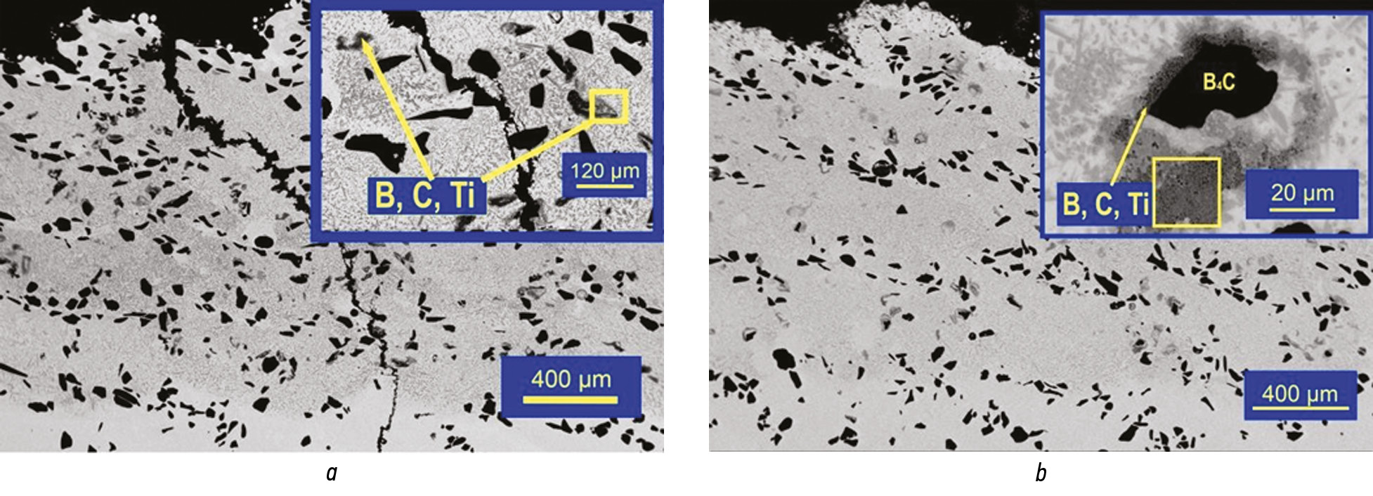 - Jia L., Wang X., Chen B., et al. Microstructural evolution and competitive reaction behavior of Ti-B4C system under solid-state sintering // J Alloys Compd. 2016. Vol. 687. P. 1004–1011. doi: 10.1016/j.jallcom.2016.06.280