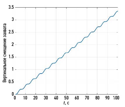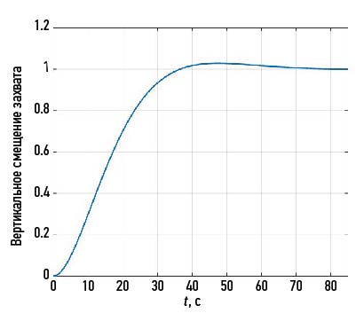 Рис. 9. Переходная характеристика положения захвата при ПИ-регулировании.