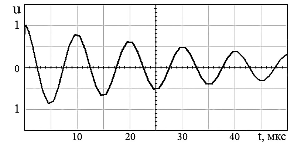 Рис. 8. Изменение напряжения u на выходе модели генератора колебаний 100 кГц по IEC 61000-4-18.