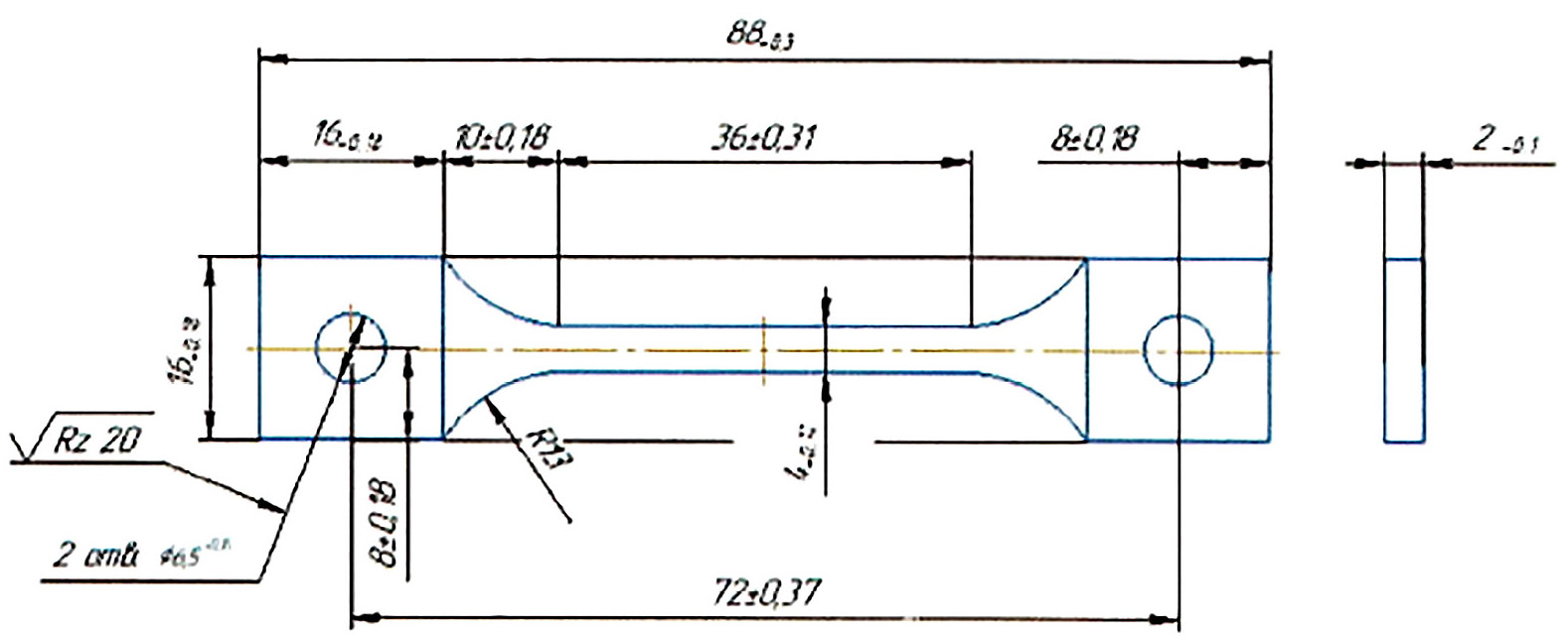 Рис. 2. Образец для испытаний на растяжение.