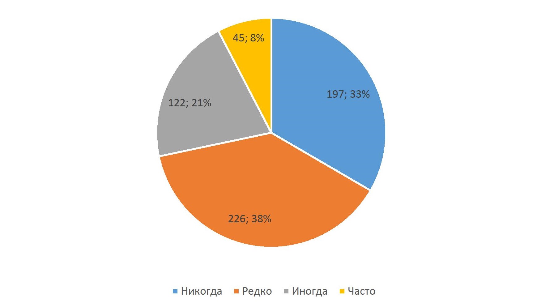 Треть опрошенных – 197 (33,3 %) ни разу не выставляли диагноз: синдром болевой дисфункции ВНЧС, только 45 клиницистов (8 %) регулярно диагностируют вышеуказанную патологию.