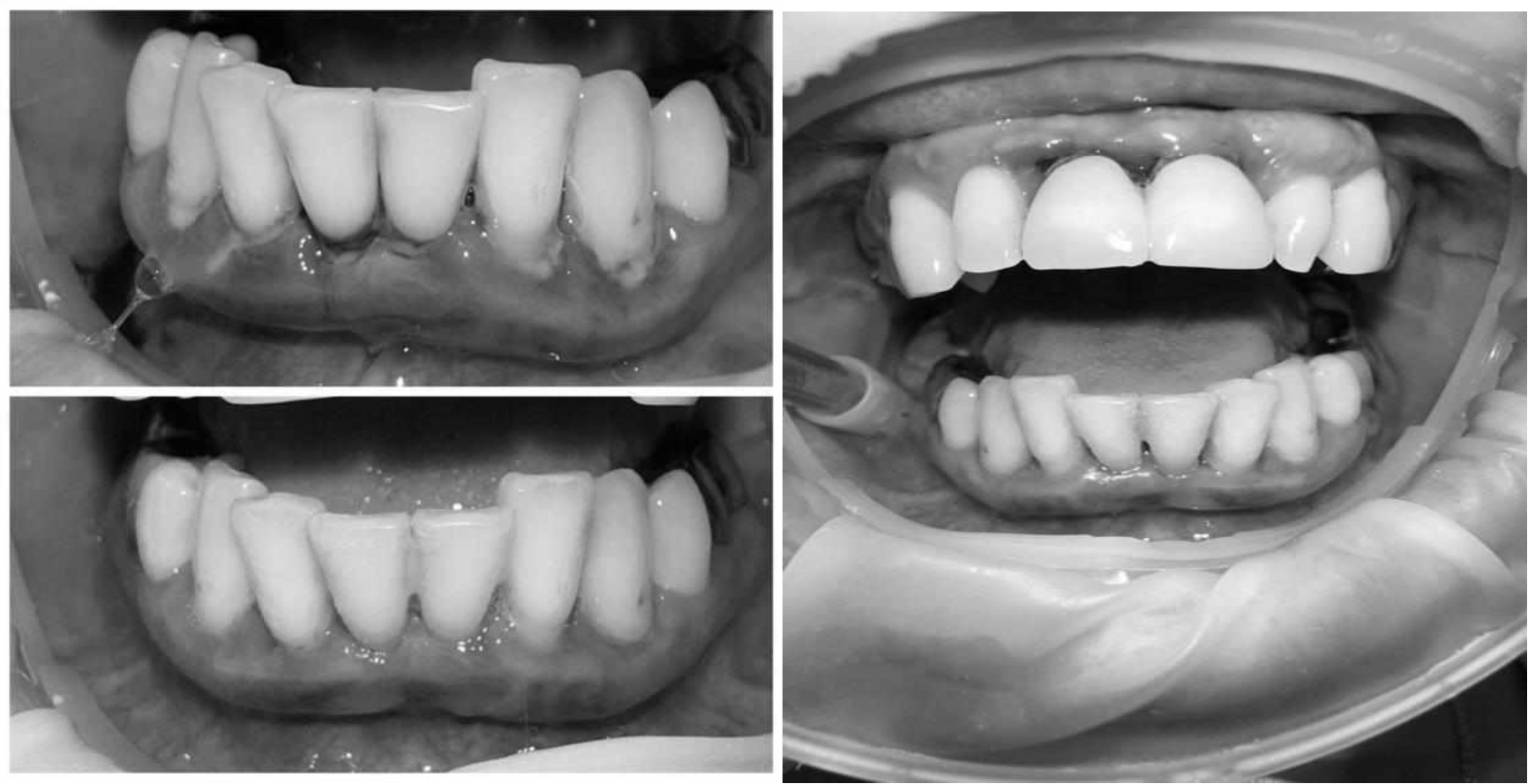 За пародонтологическим лечением обратилась женщина 61 года с жалобами на неприятный запах из полости рта, кровоточивость десен при чистке зубов, подвижность зубов, несостоятельность ортопедических конструкций.