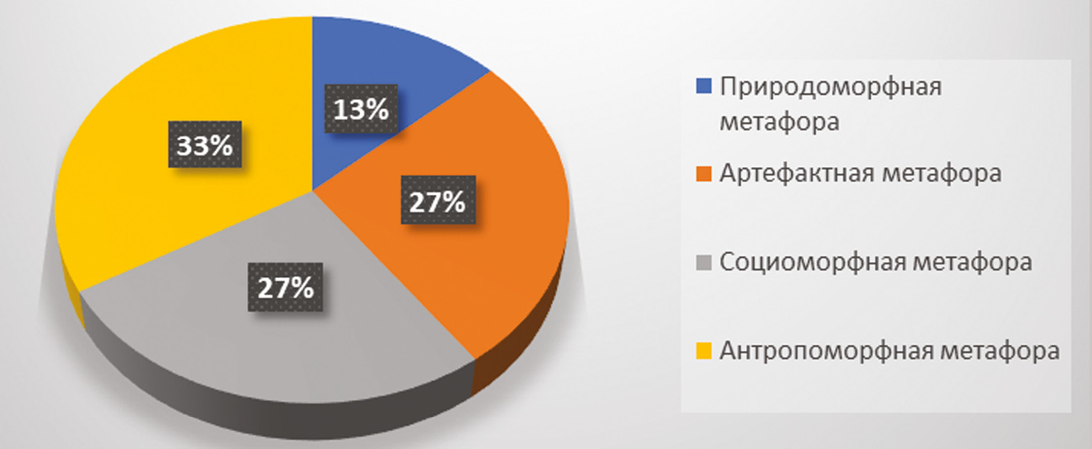 Рис. 1. Диаграмма с типами метафор и числом их использования