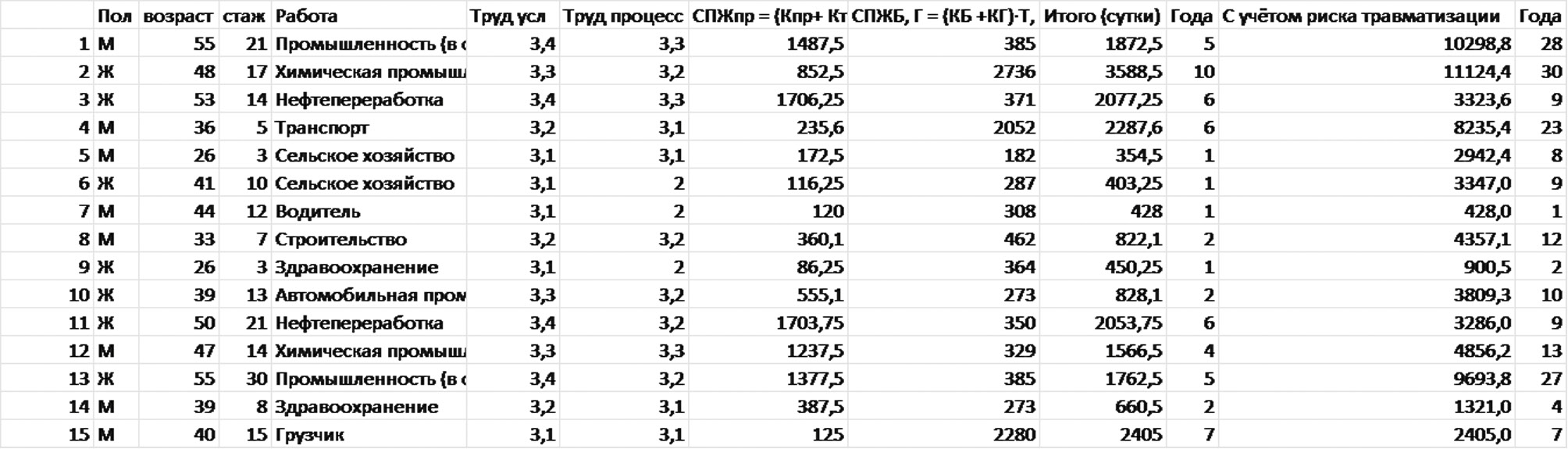 Рис. 1. Расчет сокращения продолжительности жизни при влиянии ряда факторов