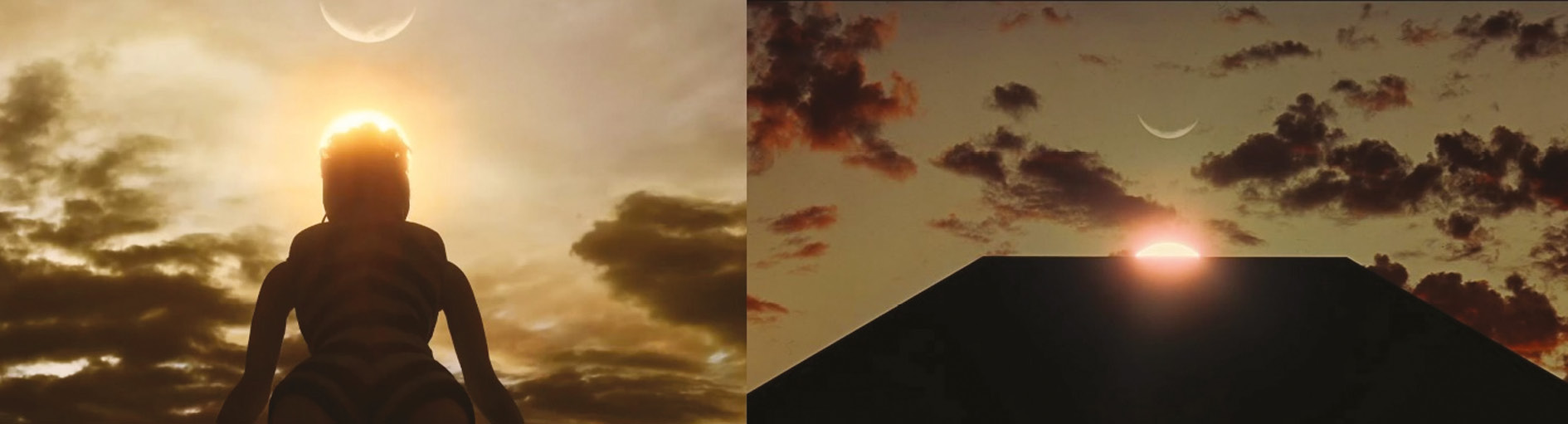 Рис. 1. Оммаж в «Барби»: а — «Барби», б — «2001: Космическая одиссея»