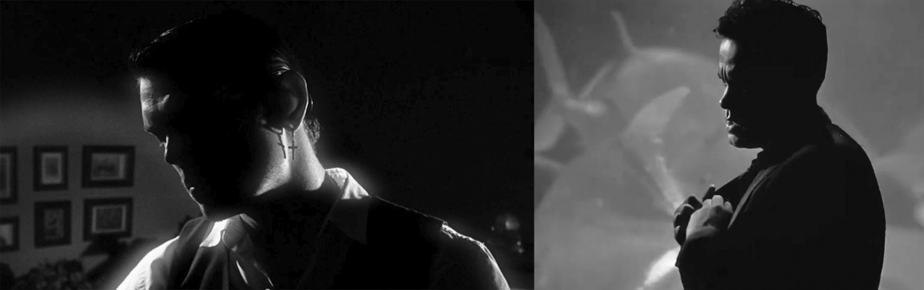 Рис. 3. Оммаж film noir: а — видеоклип «Bullet», б — «Леди из Шанхая»