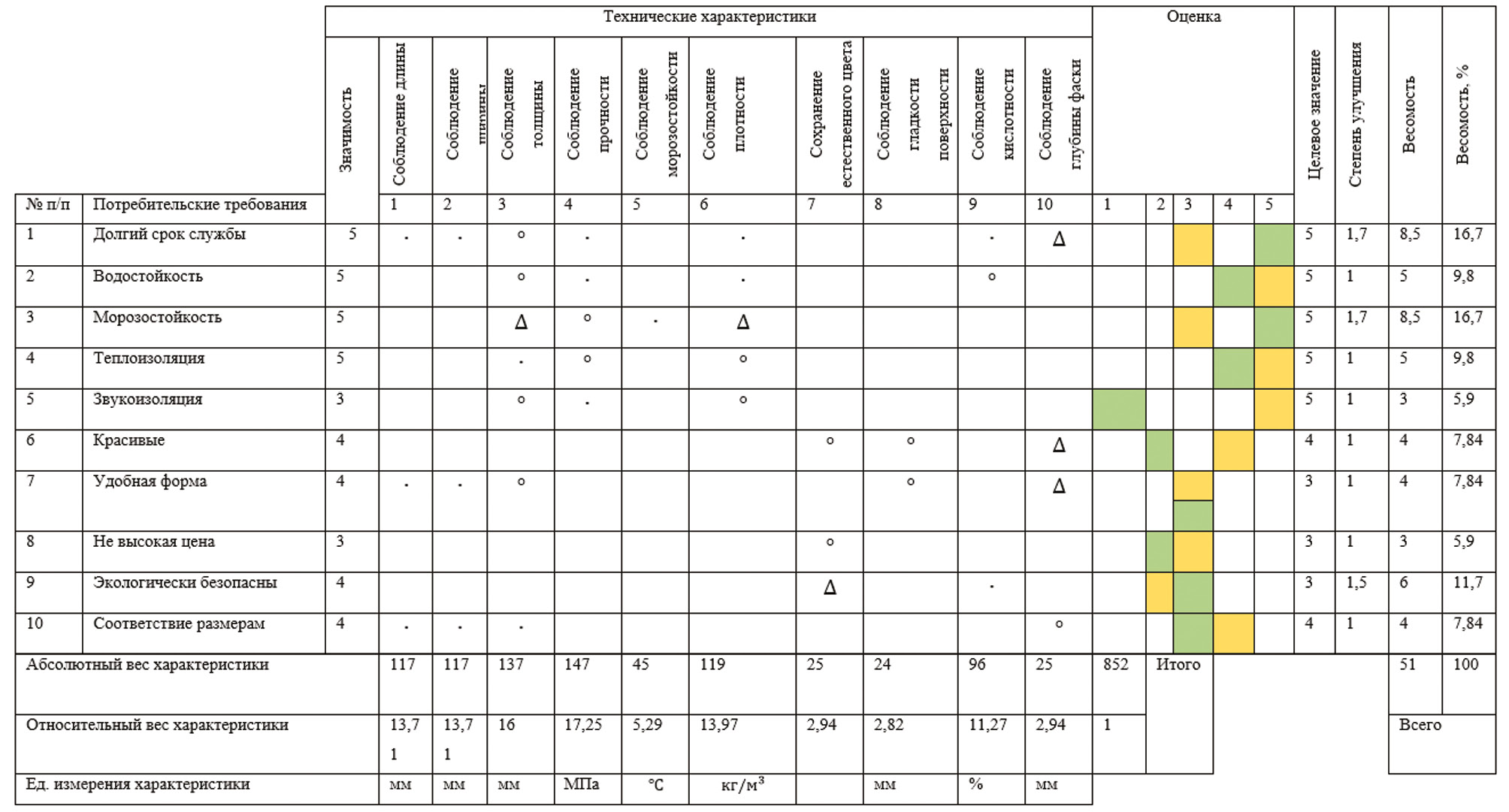 Рис. 1. «Дом качества» для производителей керамических кирпичей